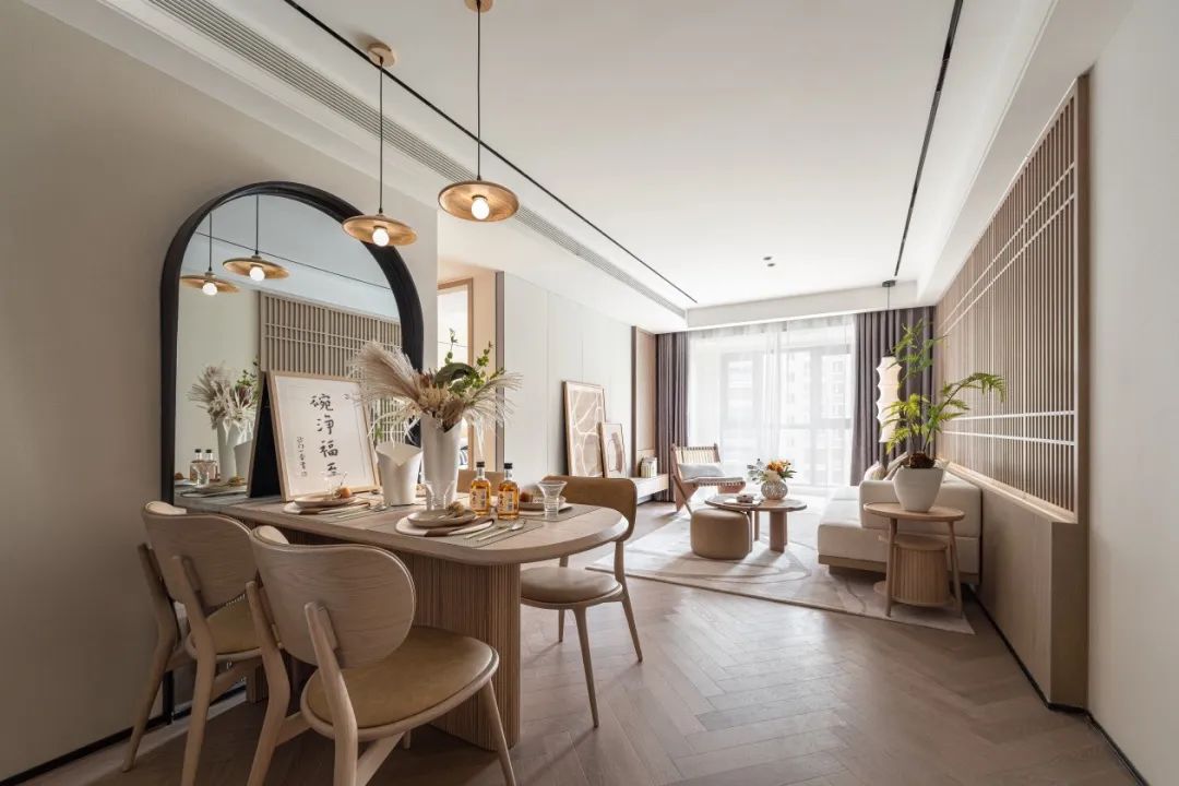 餐厅家具以柔和醇厚的材质、天然温润的色彩、婉约和暖的温度,自然清新的勾勒出宁静豁达的生活态度和居家温情,哪怕是一餐再普通的事物,都因此加上了治愈的滤镜。