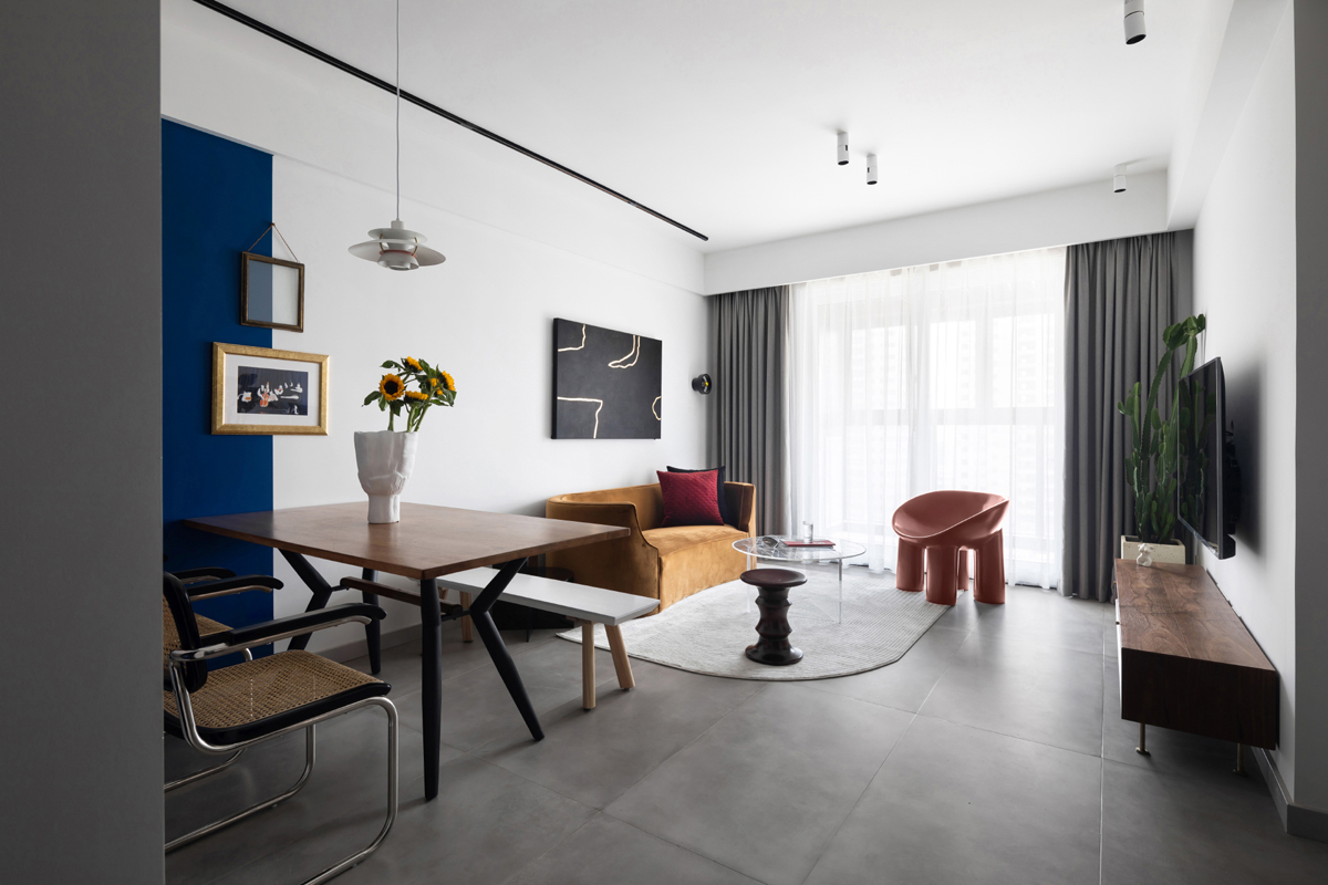 设计师从户型规划、色彩运用等方面着手,注重人与空间的情感对话,大胆的色彩拼接,让整个空间充满细节张力。