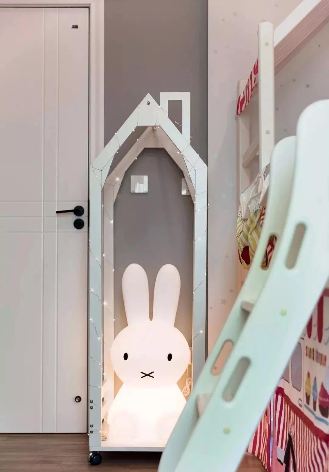 网红同款兔子玩偶夜灯,光线柔和不刺眼,十分可爱。这里不仅是睡觉的地方,也是一个充满了幻想与甜蜜的小窝。