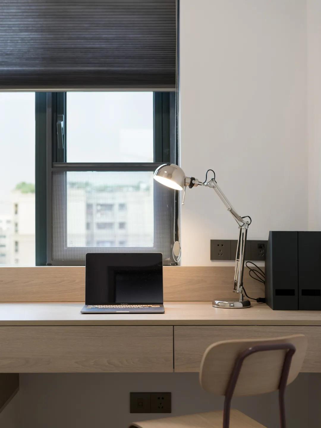 床头一体做了原木台面,可作为书桌使用,这样一个专属的学习生活空间,儿子可喜欢了。